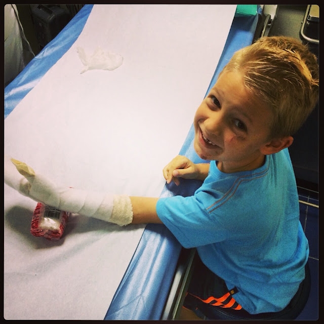 A little "Just Dance" was going on downstairs when someone bumped into Jake's arm and he collapsed. Sobbing. Maybe this was bigger than just a jammed wrist! I took Kate and Luke home and Joe took Jake to the doctor right away.